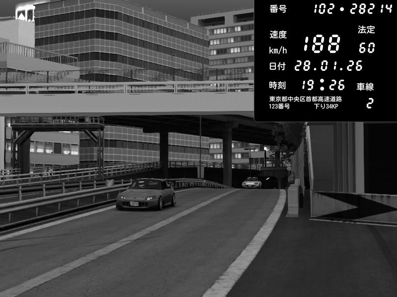 | 2026/01/28 19:26 | C1外回り 新富町 | 188 / 60 km/h | AVANTE | Honda S2000 (AP2 - Legendary) | CAPTURE |