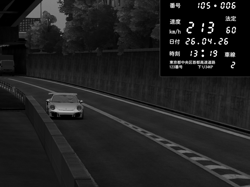 | 2026/04/26 13:19 | C1外回り 京橋 | 213 / 60 km/h | yu08 | Porsche 911 GT3 RS | CAPTURE |