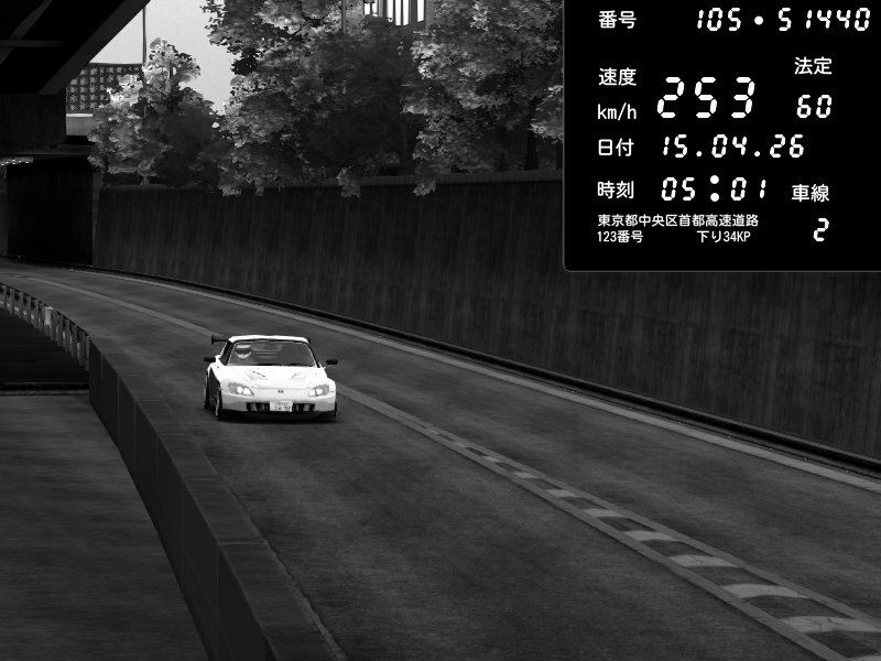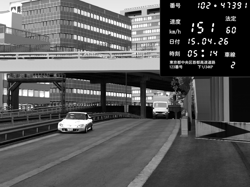 | 2026/04/15 05:14 | C1外回り 新富町 | 151 / 60 km/h | PS3 | Honda S2000 (AP2 - Legendary) | CAPTURE |