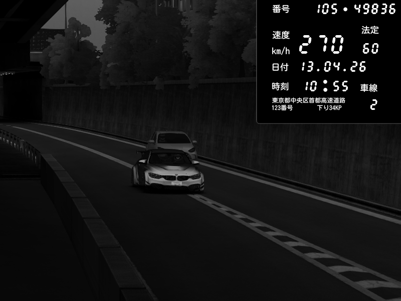 | 2026/04/13 10:55 | C1外回り 京橋 | 270 / 60 km/h | Maohee888 | BMW M4 crash.Sp Varis Widebody | CAPTURE |
