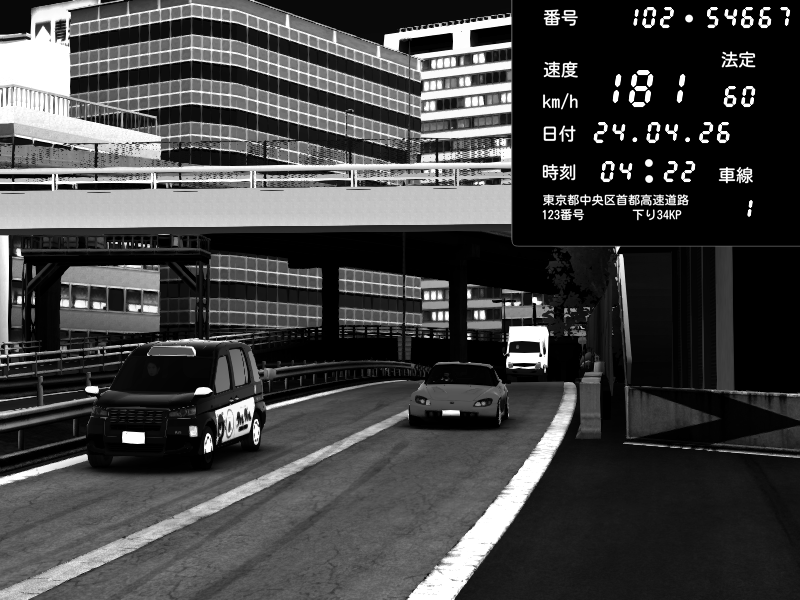 | 2026/04/23 15:58 | C1内回り 竹橋JCT | 191 / 60 km/h | Father Speed | Honda S2000 Turbo GT1 Amuse (AP1) | CAPTURE |