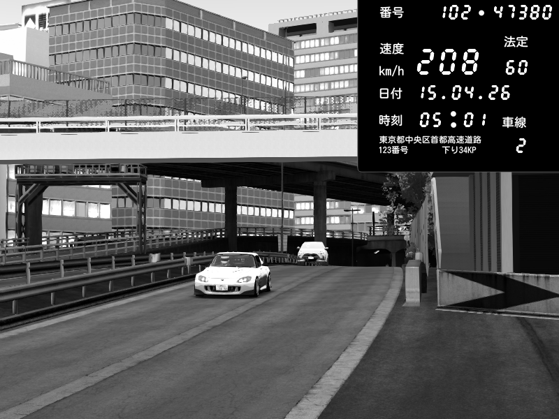 | 2026/04/15 05:01 | C1外回り 新富町 | 208 / 60 km/h | PS3 | Honda S2000 (AP2 - Legendary) | CAPTURE |