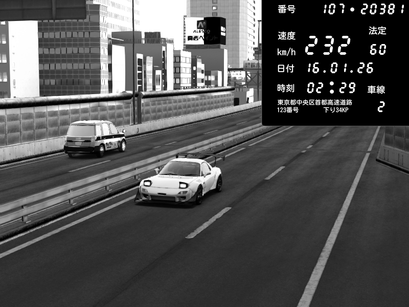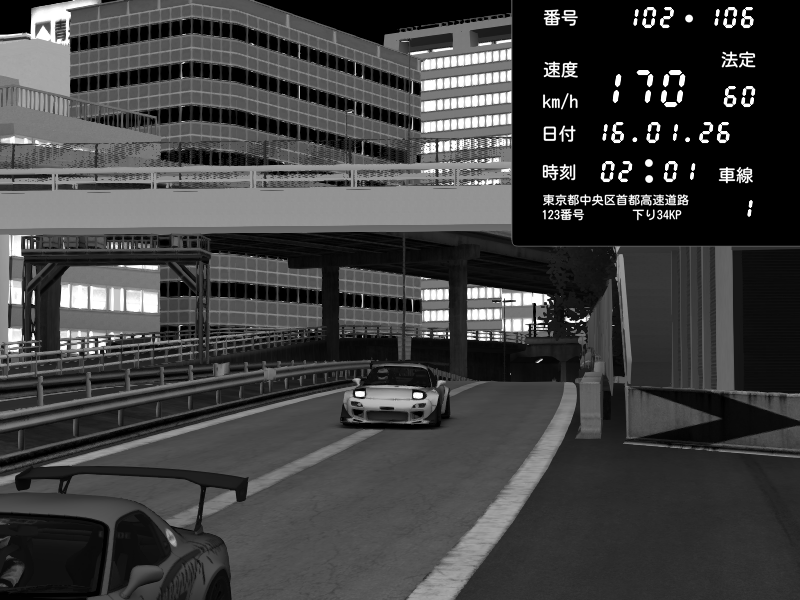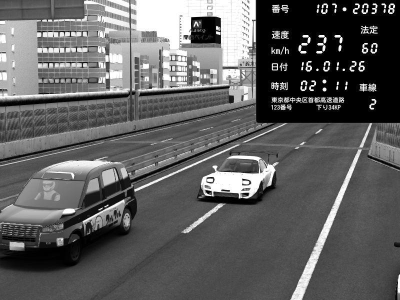 | 2026/01/15 12:50 | C1外回り 京橋 | 284 / 60 km/h | m-flo | Mazda RX-7 FD3S FEED Afflux GT3 | CAPTURE |