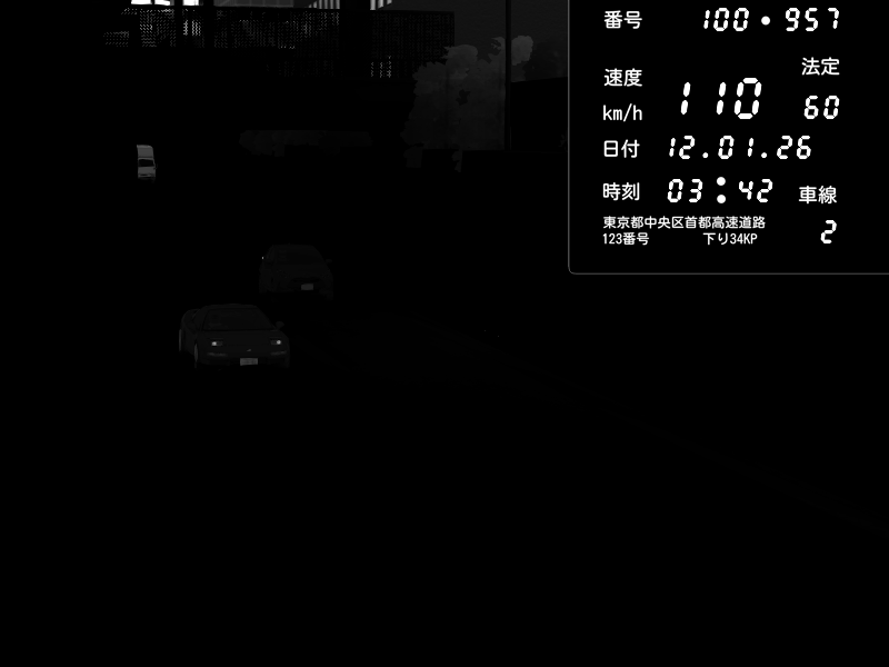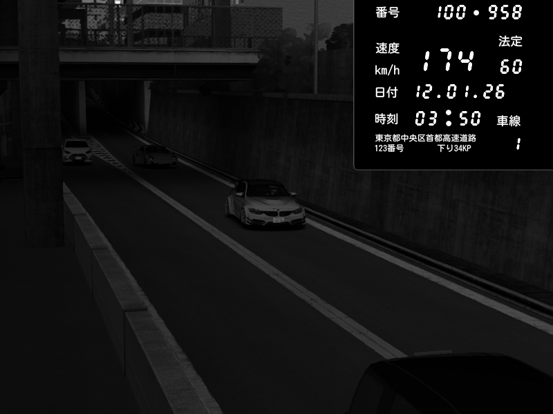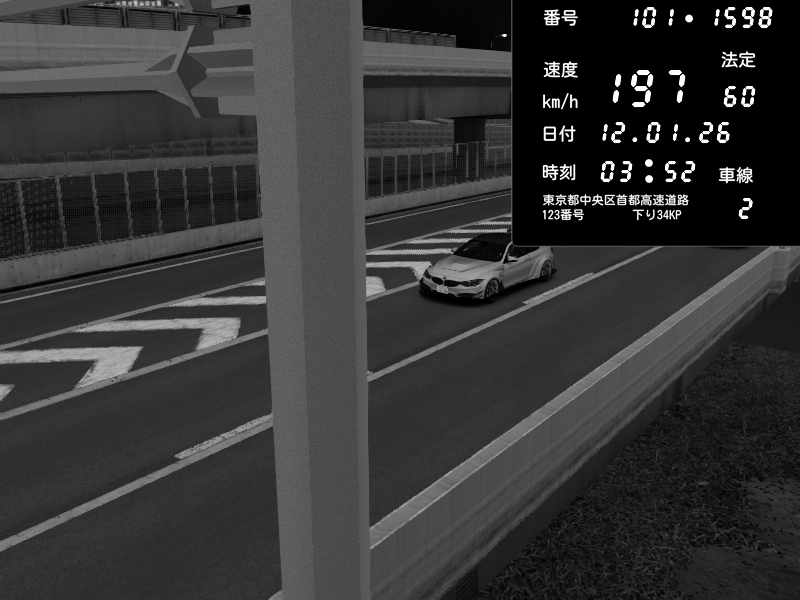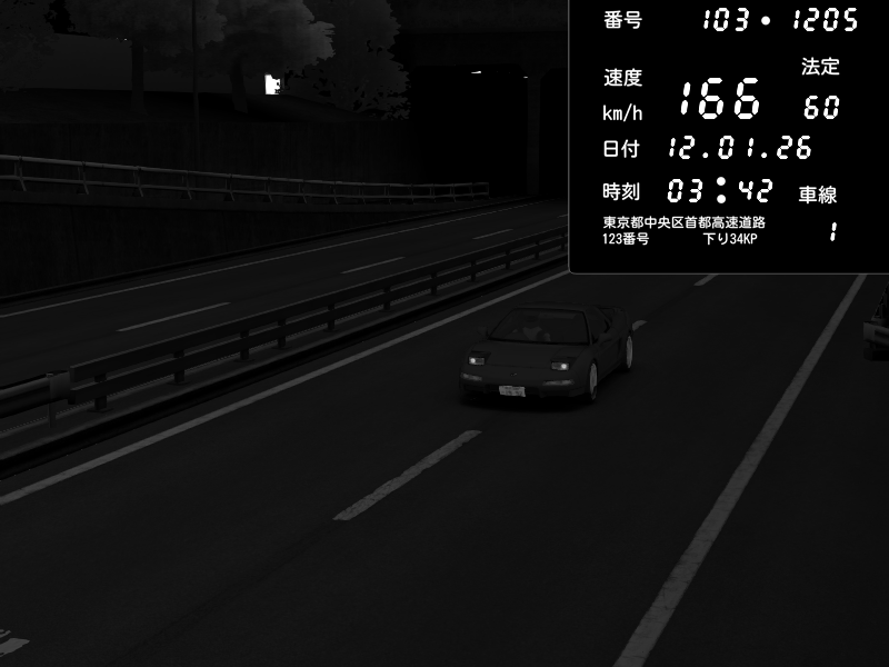 | 2026/01/11 10:09 | C1内回り 竹橋JCT | 176 / 60 km/h | Player | Pit Road M - Mitsubishi GTO Twin Turbo | CAPTURE |