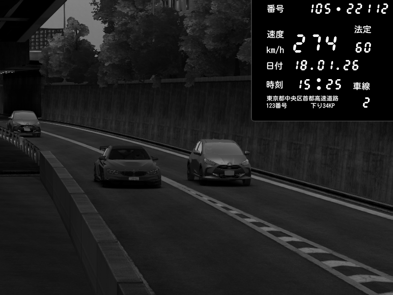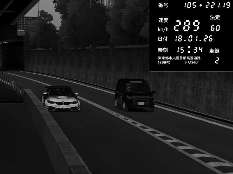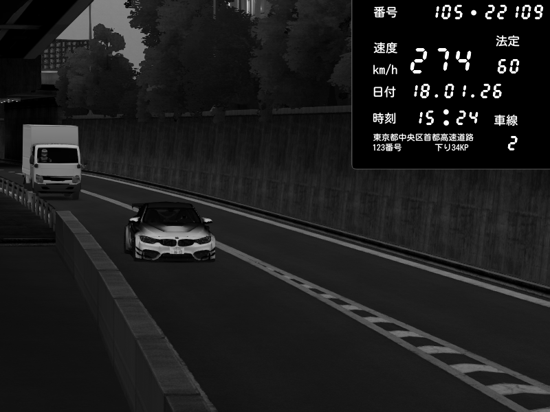 | 2026/01/18 15:21 | C1外回り 京橋 | 298 / 60 km/h | KikokuRori | BMW M4 crash.Sp Varis Widebody | CAPTURE |