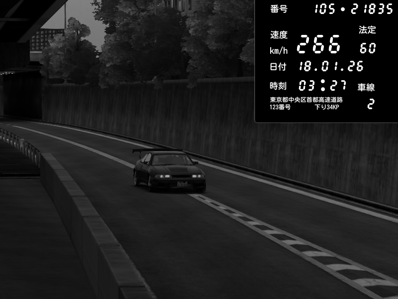 | 2026/01/18 03:27 | C1外回り 新富町 | 163 / 60 km/h | gc8 lover | Nissan Skyline GTR R33 (S3 - Wangan) | CAPTURE |