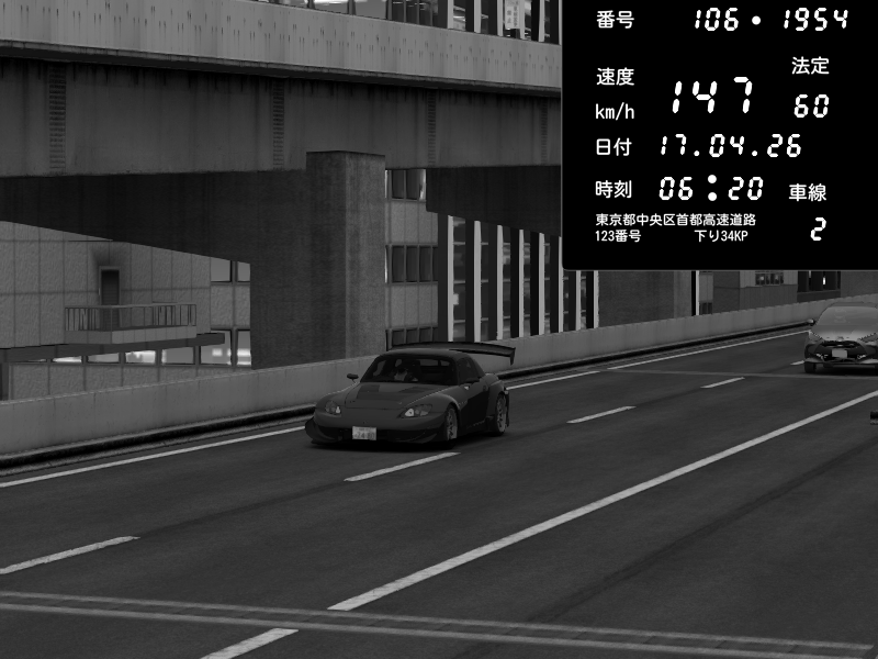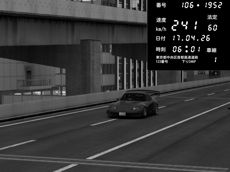 | 2026/04/17 05:59 | C1外回り 京橋 | 233 / 60 km/h | Altens (Newbie) | Honda S2000 (AP2 - Legendary) | CAPTURE |