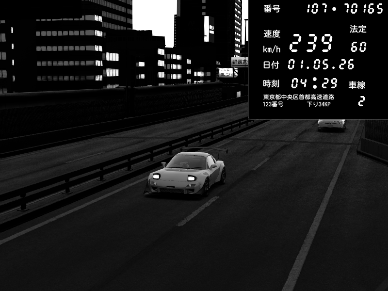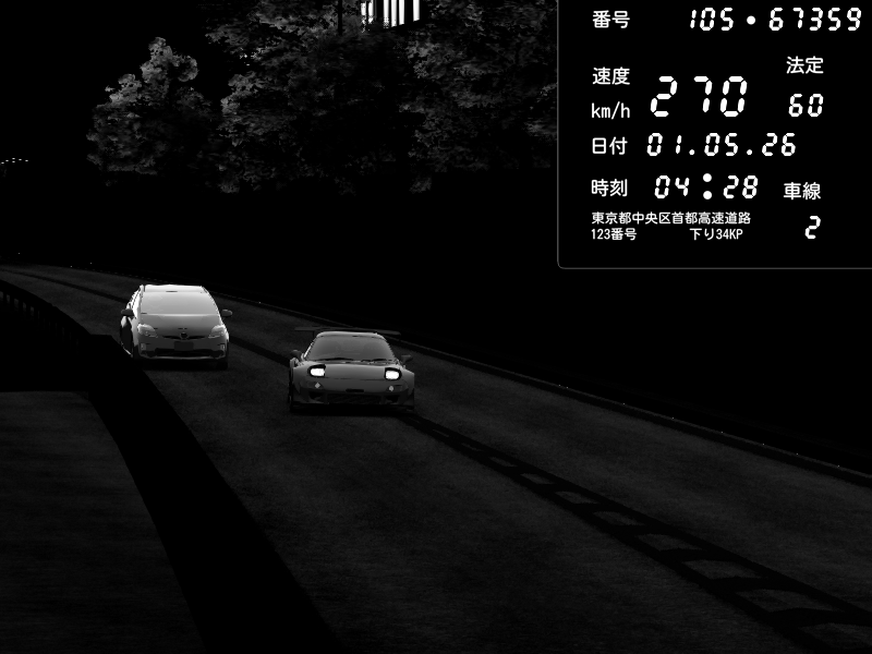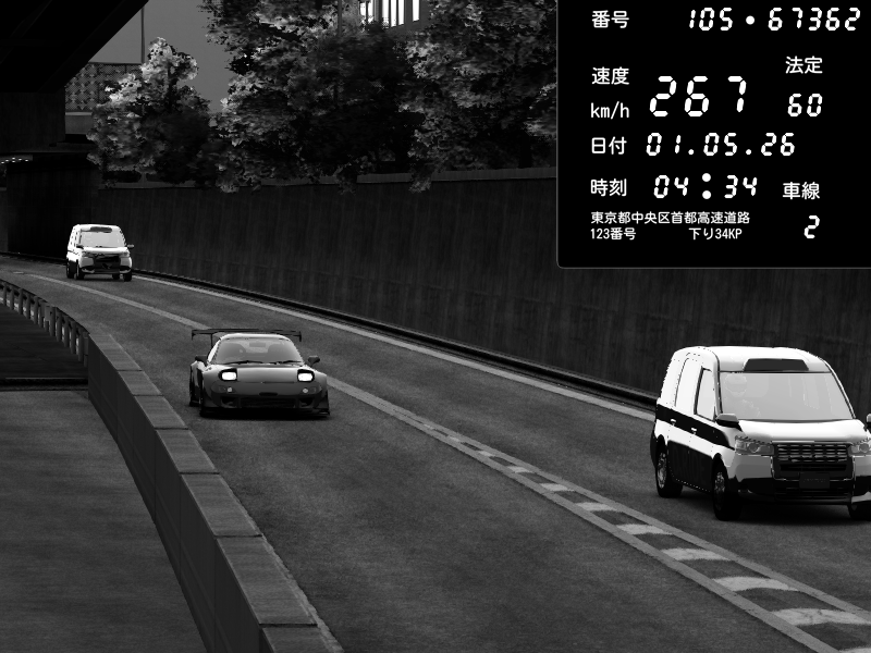 | 2026/04/29 21:26 | C1外回り 京橋 | 272 / 60 km/h | U-0/S.R.C | Mazda RX-7 FD3S RE Amemiya | CAPTURE |