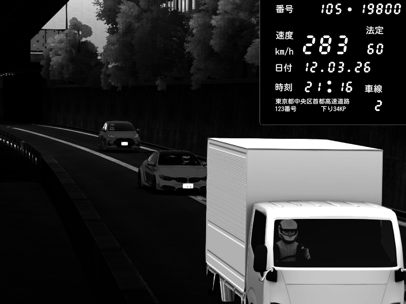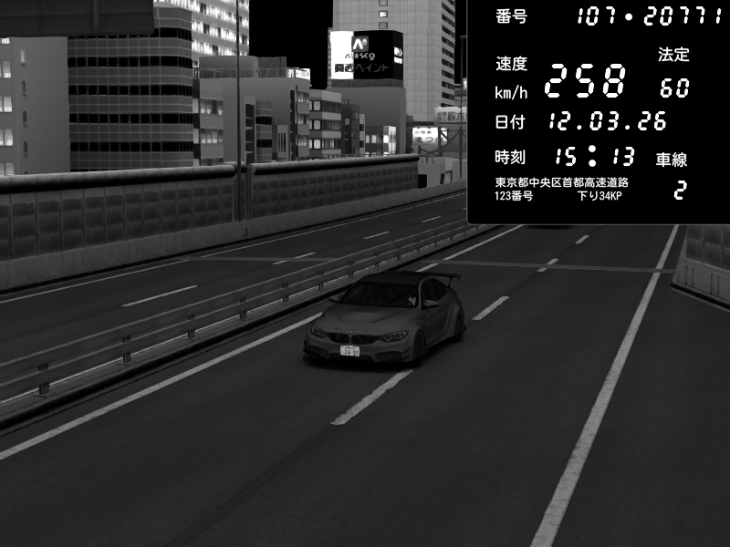 | 2026/03/12 02:41 | C1内回り 銀座 | 127 / 60 km/h | Txm266 | BMW M4 crash.Sp Varis Widebody | CAPTURE |