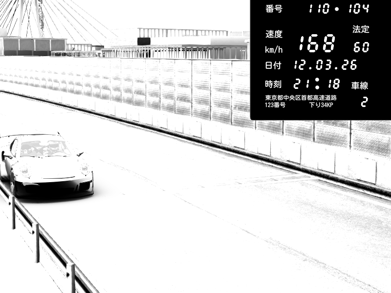 | 2026/03/12 04:21 | 1号下り 平和島 | 266 / 60 km/h | Txm266 | Porsche 911 GT3 RS | CAPTURE |