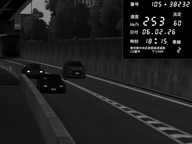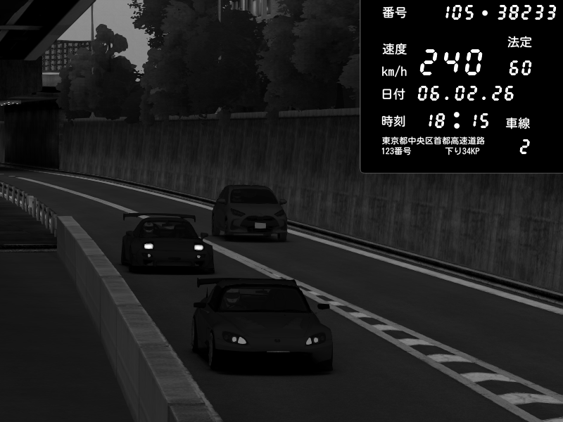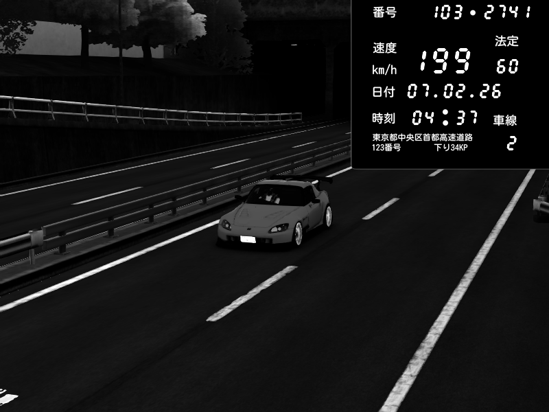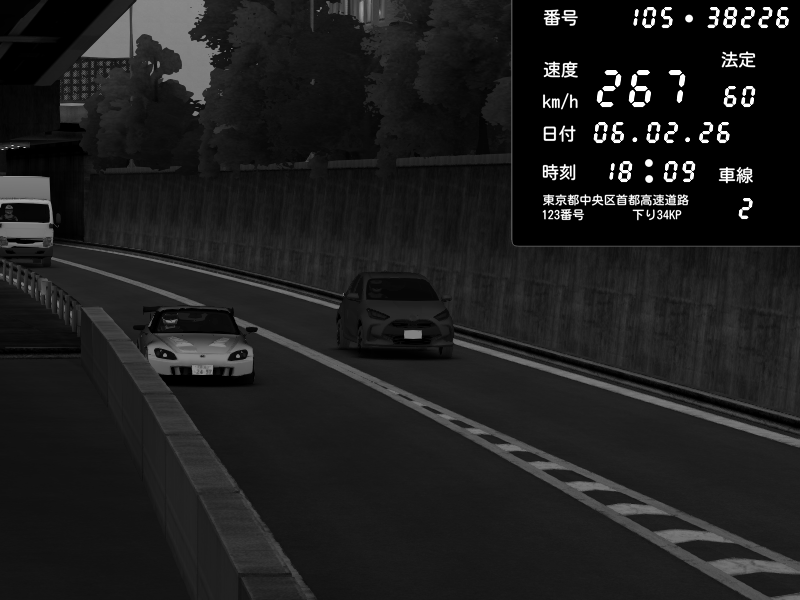 | 2026/02/07 04:29 | C1内回り 竹橋JCT | 180 / 60 km/h | 木曜が一番疲れている | Honda S2000 (AP2 - Legendary) | CAPTURE |