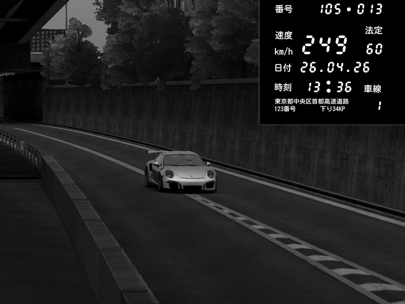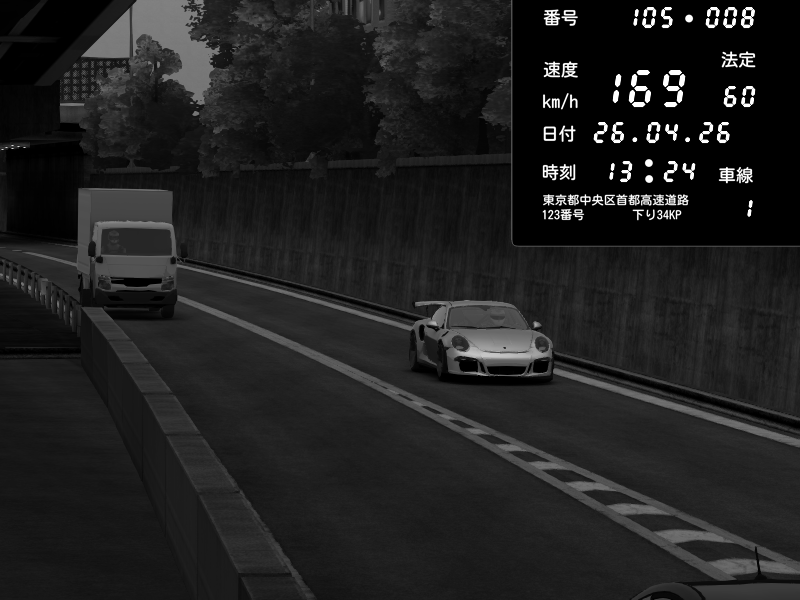 | 2026/04/26 13:24 | C1外回り 新富町 | 152 / 60 km/h | yu08 | Porsche 911 GT3 RS | CAPTURE |