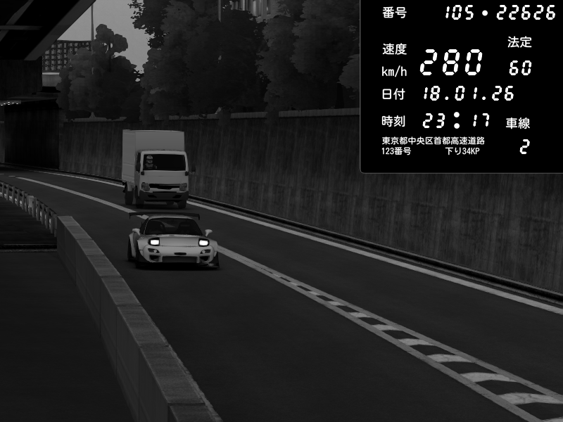| 2026/01/18 15:24 | C1外回り 京橋 | 275 / 60 km/h | ゴストレイ | Mazda RX-7 FD3S FEED Afflux GT3 | CAPTURE |