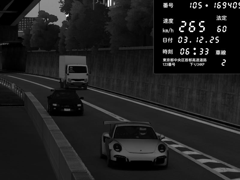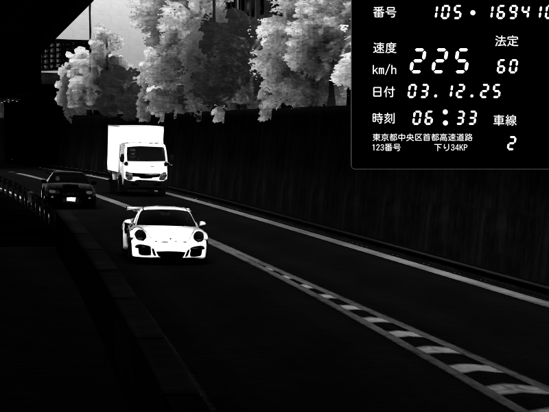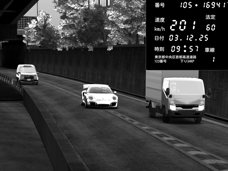 | 2025/12/03 06:33 | C1外回り 京橋 | 225 / 60 km/h | sora | Porsche 911 GT3 RS | CAPTURE |