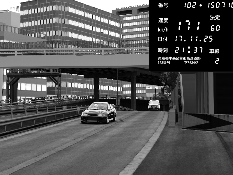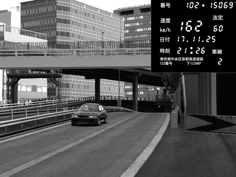 | 2025/11/17 21:31 | C1外回り 新富町 | 102 / 60 km/h | ixoye1205 | Mitsubishi Lancer Evolution V Wangan Spec | CAPTURE |
