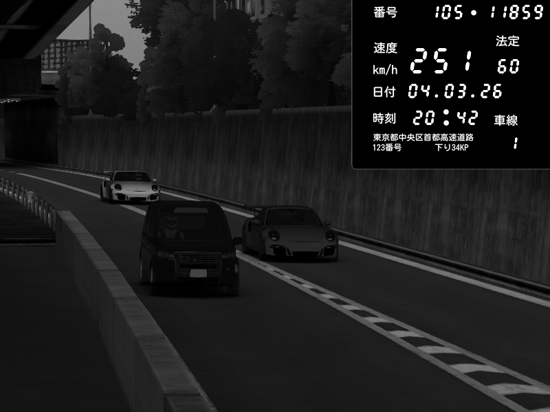 | 2026/03/04 20:42 | C1外回り 京橋 | 251 / 60 km/h | zipoki | Porsche 911 GT3 RS | CAPTURE |