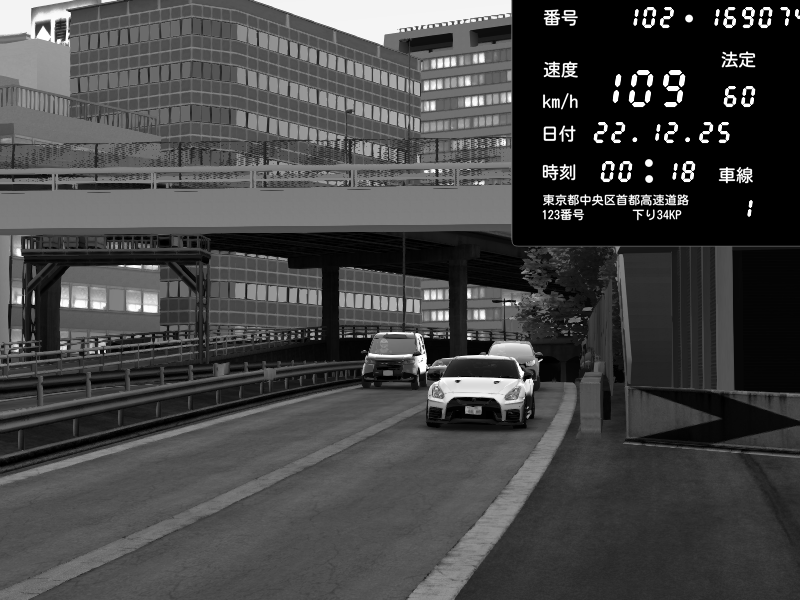| 2025/12/22 00:18 | C1外回り 新富町 | 109 / 60 km/h | CorgiOnFleek | Nissan GT-R NISMO 2017 | CAPTURE |