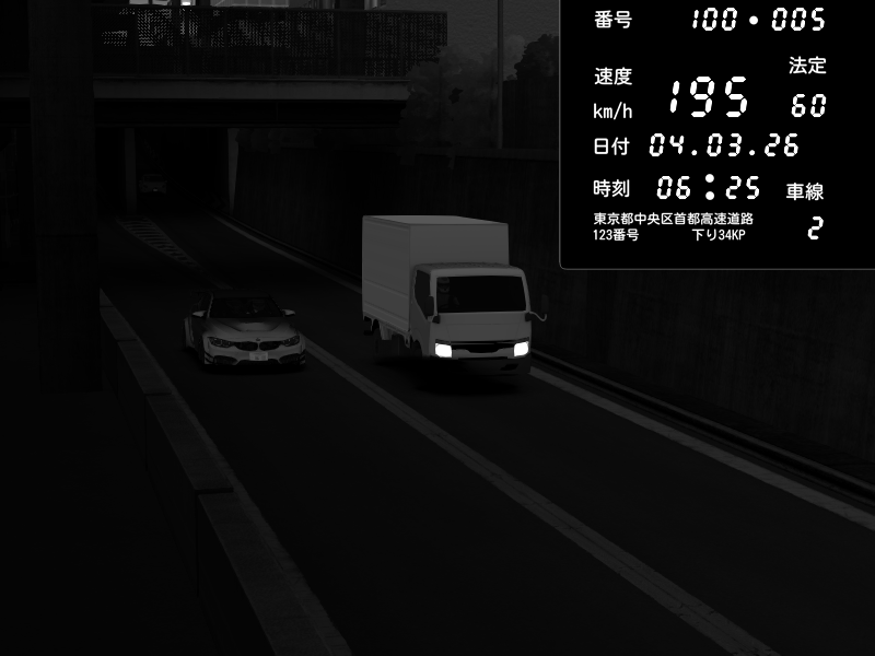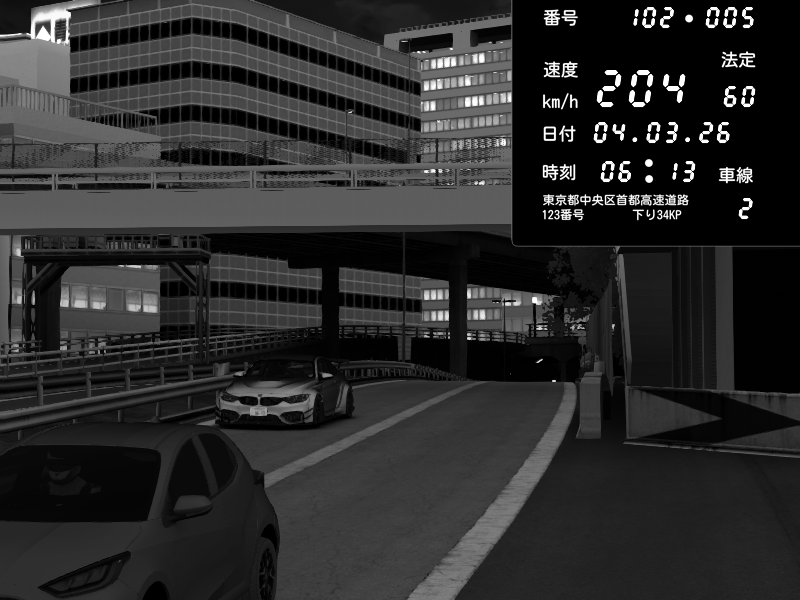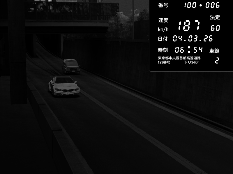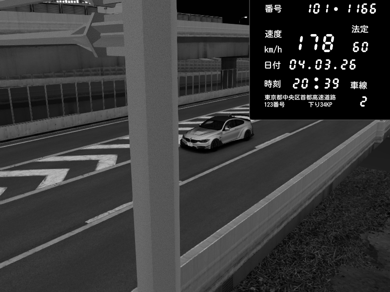 | 2026/03/04 20:39 | C1内回り 竹橋JCT | 178 / 60 km/h | Aloe | BMW M4 crash.Sp Varis Widebody | CAPTURE |