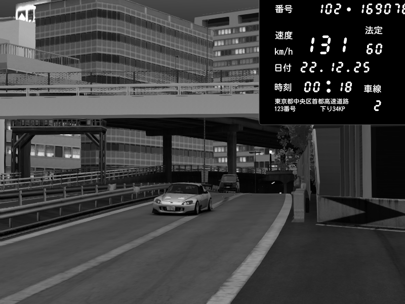 | 2025/12/22 00:18 | C1外回り 新富町 | 131 / 60 km/h | danbo-ru | Honda S2000 (AP2 - Legendary) | CAPTURE |