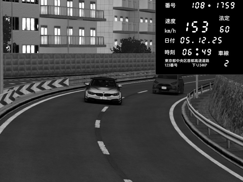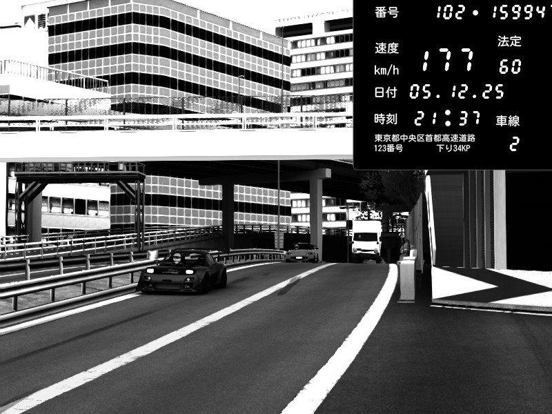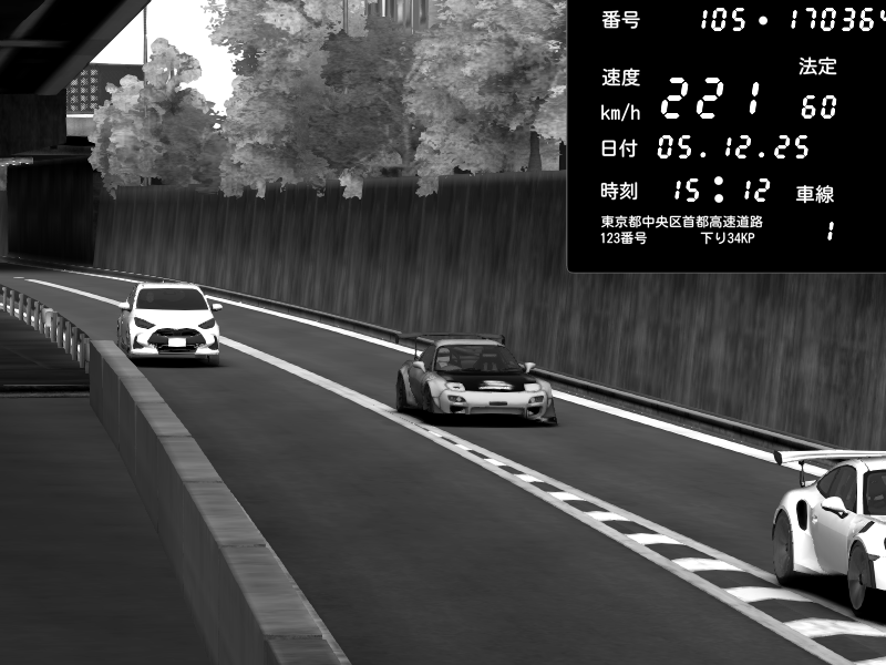 | 2025/12/05 12:38 | C1外回り 新富町 | 108 / 60 km/h | 狙撃されたセイキン | Mazda RX-7 FD3S FEED Afflux GT3 | CAPTURE |