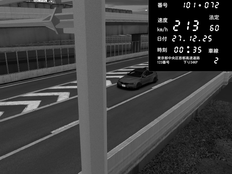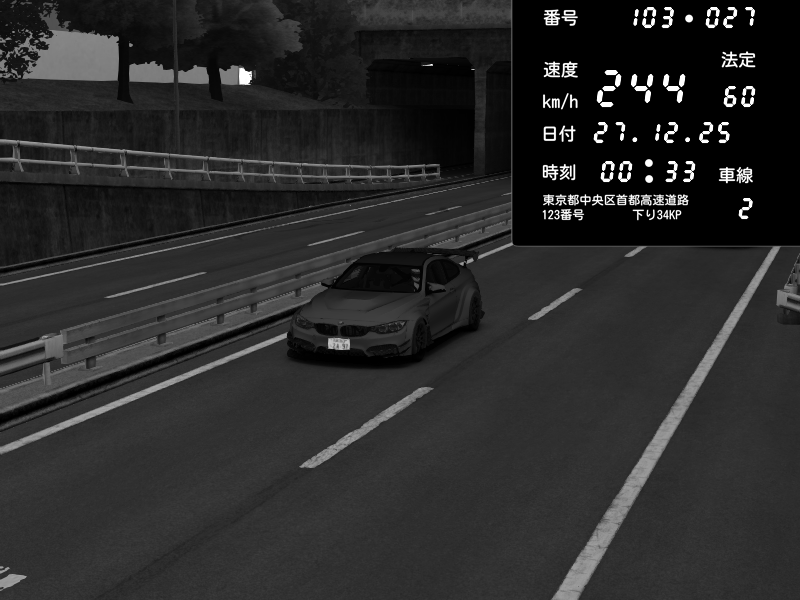| 2025/12/27 00:31 | C1内回り 竹橋JCT | 214 / 60 km/h | homura | BMW M4 crash.Sp Varis Widebody | CAPTURE |