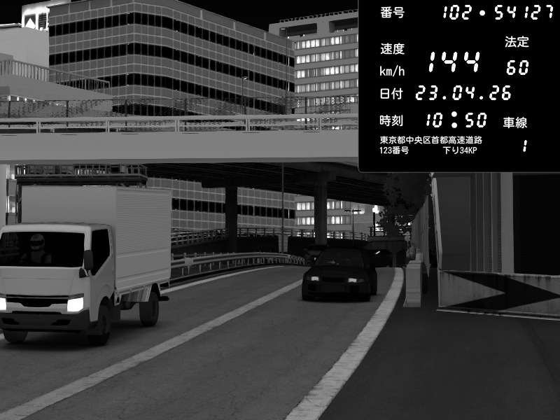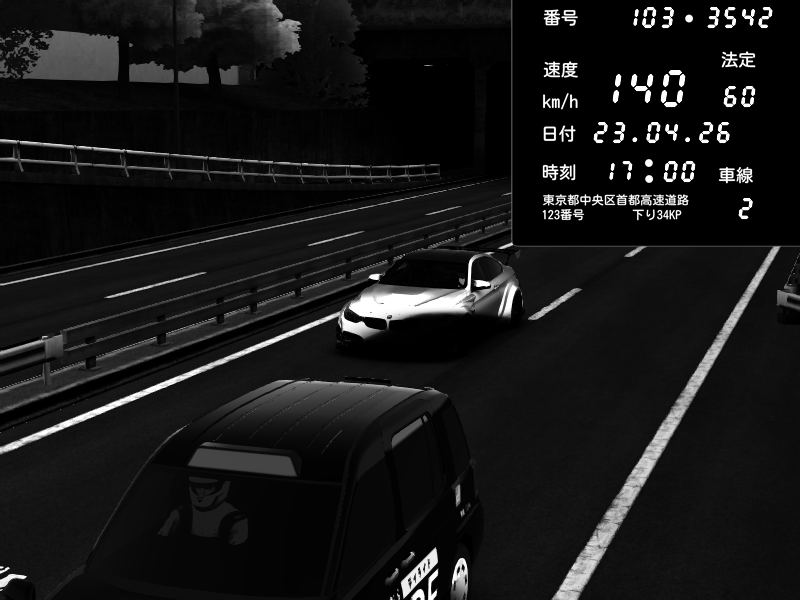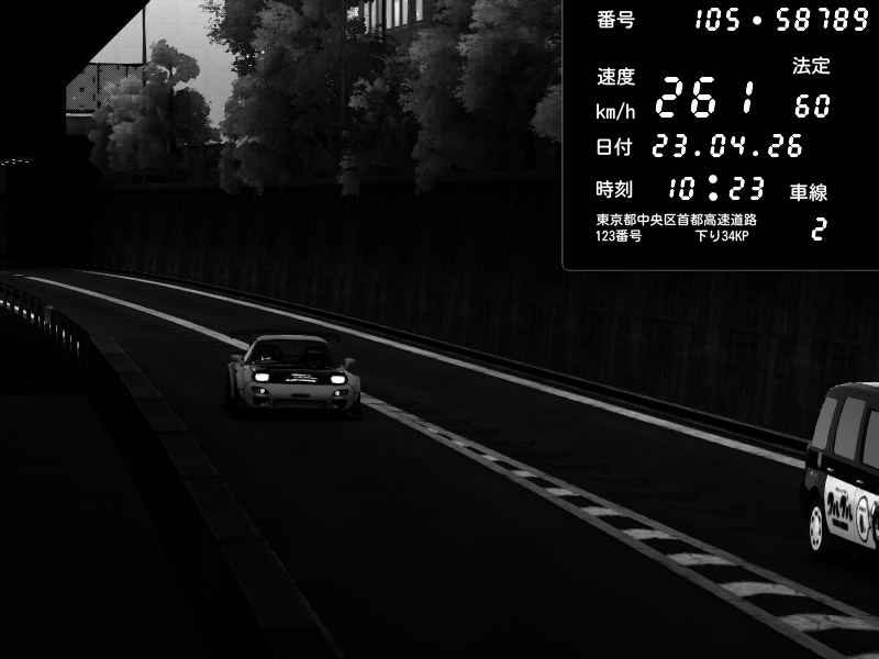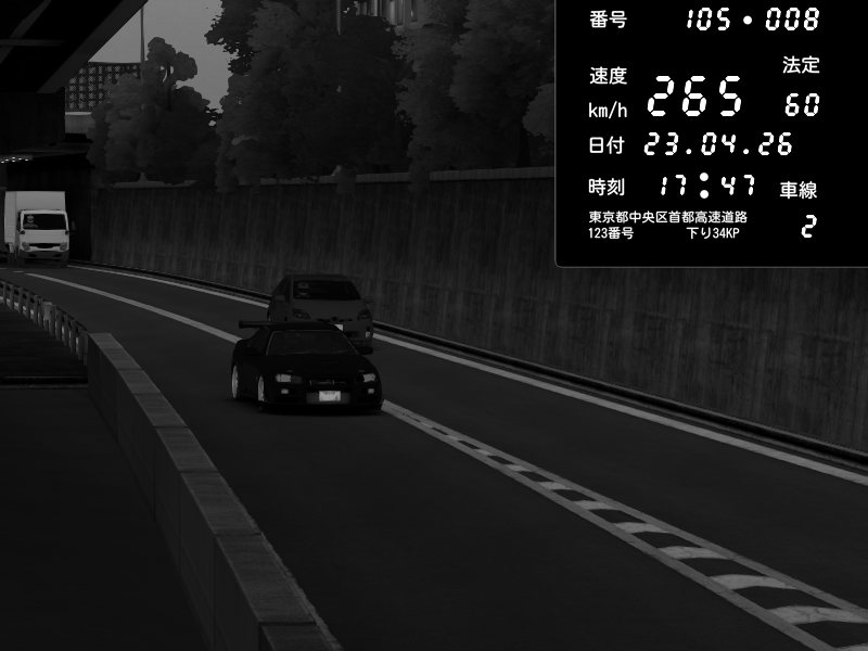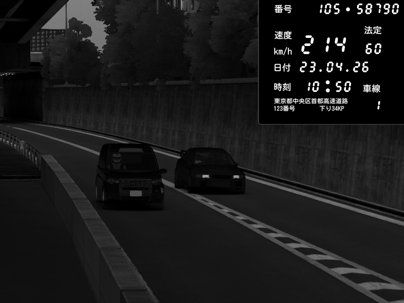 | 2026/04/23 17:48 | C1内回り 竹橋JCT | 133 / 60 km/h | Player | Nissan Skyline GTR R33 (S3 - Wangan) | CAPTURE |