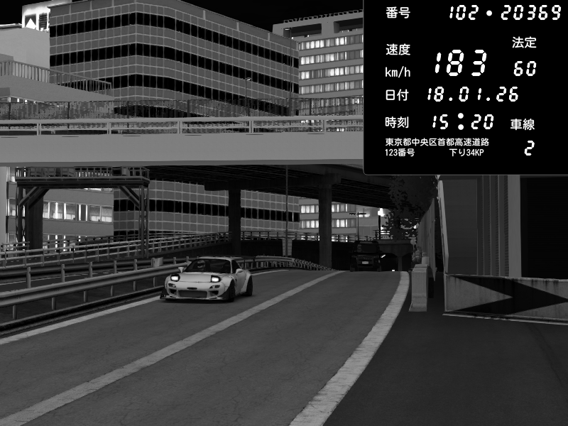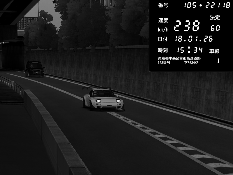 | 2026/01/18 15:21 | C1外回り 京橋 | 273 / 60 km/h | ゴストレイ | Mazda RX-7 FD3S FEED Afflux GT3 | CAPTURE |