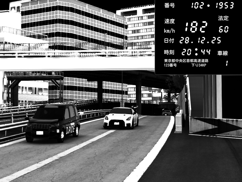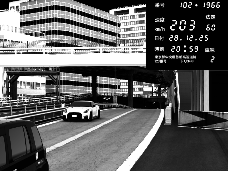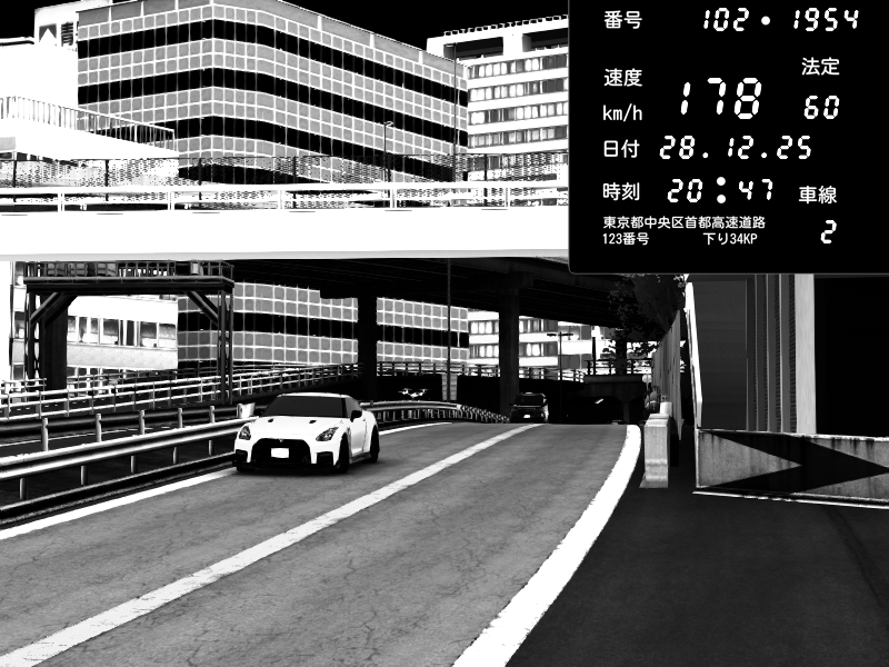 | 2025/12/28 20:59 | C1外回り 新富町 | 203 / 60 km/h | rsp | Nissan GT-R NISMO 2017 | CAPTURE |