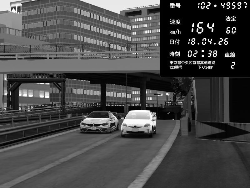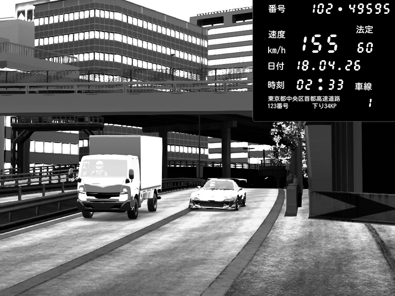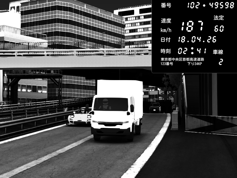 | 2026/04/18 02:27 | C1外回り 新富町 | 194 / 60 km/h | G29(LUT)&32TV60Hz3画面老人飲酒中 | Honda S2000 Turbo GT1 Amuse (AP1) | CAPTURE |