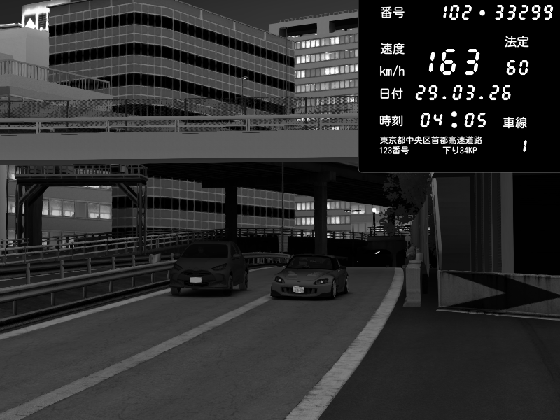 | 2026/03/29 03:56 | C1外回り 芝公園 | 229 / 60 km/h | hayato | Honda S2000 (AP2 - Legendary) | CAPTURE |