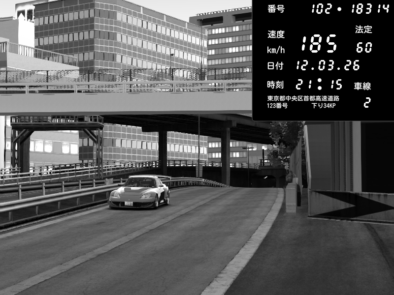 | 2026/03/12 03:28 | C1内回り 竹橋JCT | 101 / 60 km/h | Player | Nissan GT-R NISMO 2017 | CAPTURE |