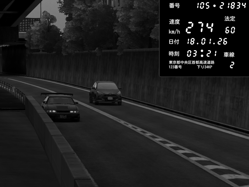 | 2026/01/18 03:21 | C1外回り 新富町 | 179 / 60 km/h | gc8 lover | Nissan Skyline GTR R33 (S3 - Wangan) | CAPTURE |
