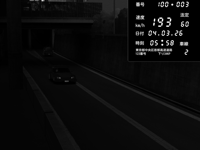 | 2026/03/04 20:39 | C1外回り 芝公園 | 195 / 60 km/h | ??? | Honda S2000 (AP2 - Legendary) | CAPTURE |