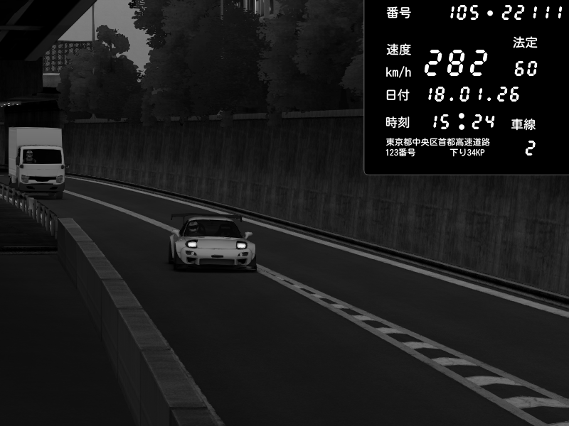 | 2026/01/18 15:22 | C1外回り 京橋 | 282 / 60 km/h | HellAkey | Mazda RX-7 FD3S FEED Afflux GT3 | CAPTURE |