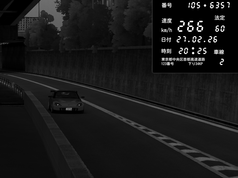 | 2026/02/27 20:25 | C1外回り 京橋 | 266 / 60 km/h | Sh0a | Honda S2000 (AP2 - Legendary) | CAPTURE |