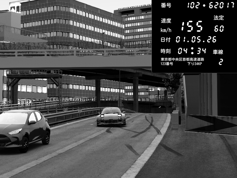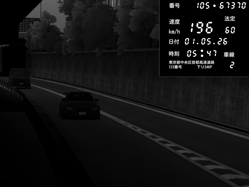 | 2026/04/29 21:26 | C1外回り 新富町 | 173 / 60 km/h | Havhivi | Nissan GT-R NISMO 2017 | CAPTURE |