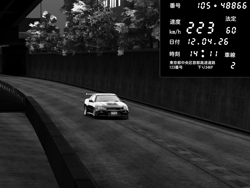 | 2026/04/12 22:58 | C1外回り 新富町 | 191 / 60 km/h | Kurokabe/S.R.C | Nissan Skyline GT-R R34 Nismo Omori Factory S1 | CAPTURE |