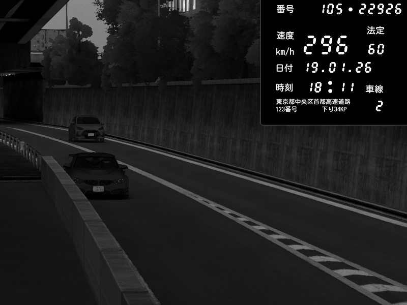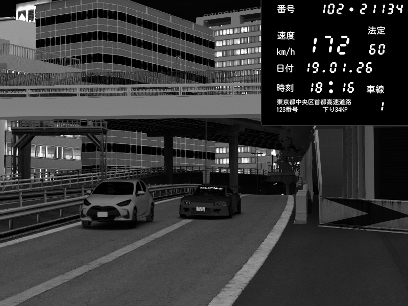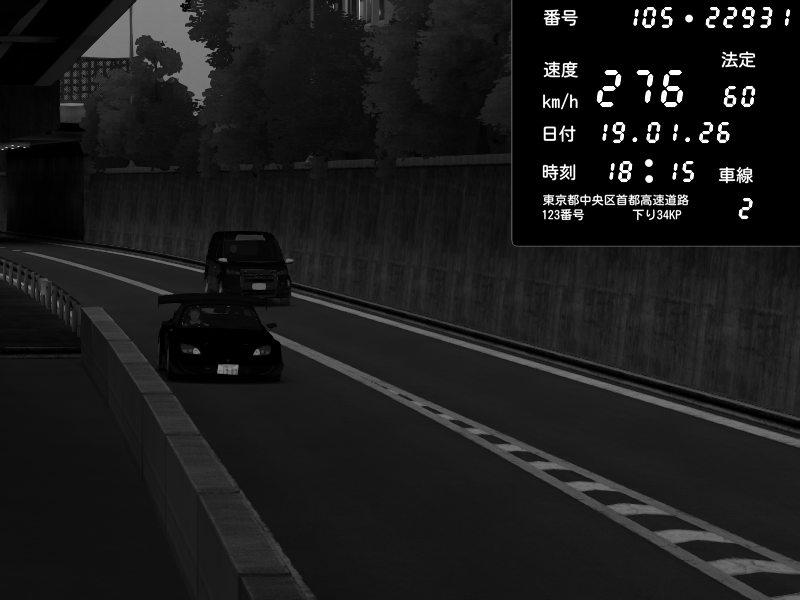 | 2026/01/19 05:15 | C1内回り 竹橋JCT | 179 / 60 km/h | DonChacho | Nissan GT-R NISMO 2017 | CAPTURE |