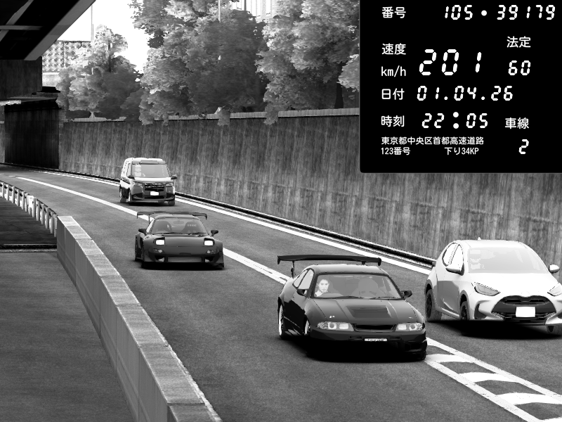 | 2026/04/01 22:05 | C1外回り 京橋 | 183 / 60 km/h | YEWEON | Nissan Skyline GTR R33 (S3 - Wangan) | CAPTURE |