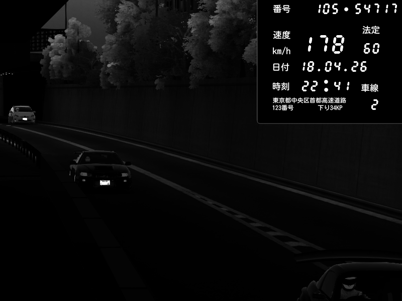 | 2026/04/18 22:41 | C1外回り 京橋 | 178 / 60 km/h | Kurokabe/S.R.C | Nissan Skyline GT-R R34 Nismo Omori Factory S1 | CAPTURE |