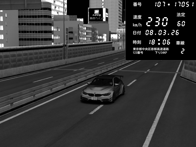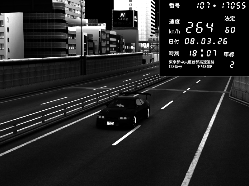 | 2026/03/08 18:06 | C1外回り 京橋 | 259 / 60 km/h | Kurokabe | Nissan Skyline GTR R33 (S3 - Wangan) | CAPTURE |