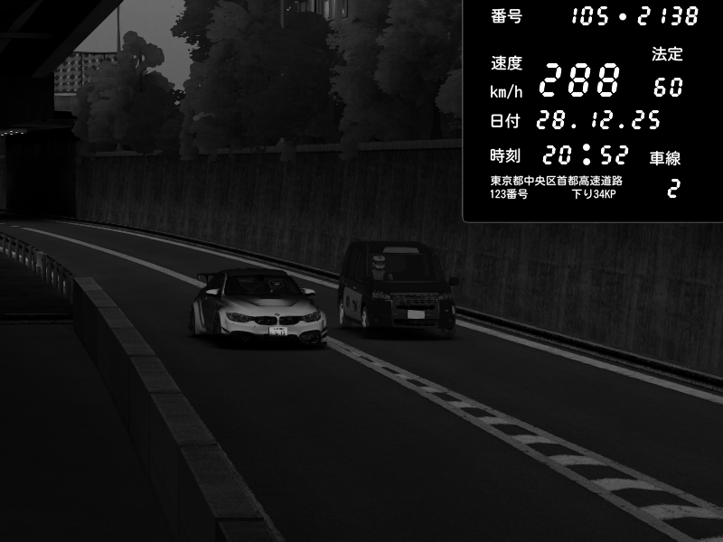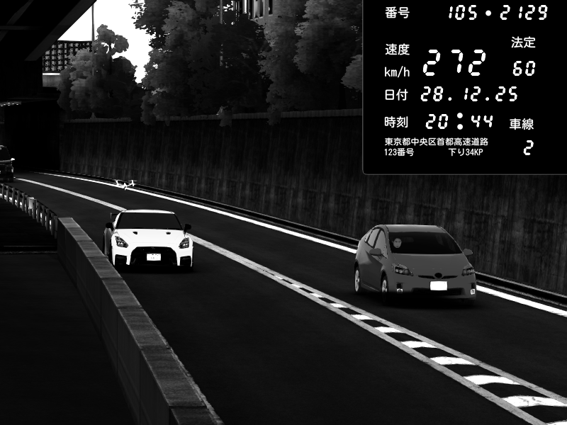 | 2025/12/28 20:47 | C1外回り 京橋 | 262 / 60 km/h | rsp | Nissan GT-R NISMO 2017 | CAPTURE |