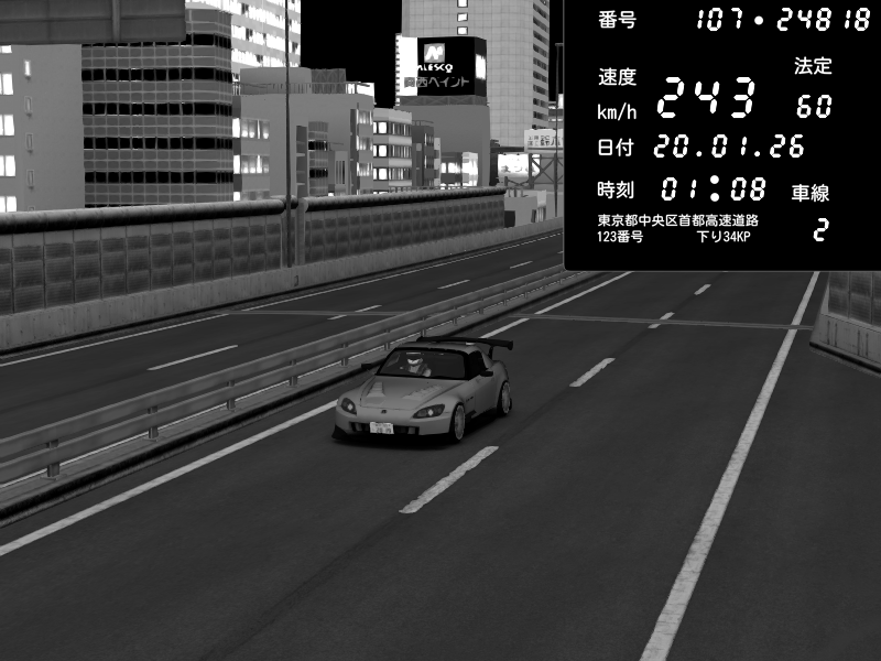| 2026/01/19 04:32 | C1外回り 京橋 | 204 / 60 km/h | ojisandtift | Honda S2000 (AP2 - Legendary) | CAPTURE |