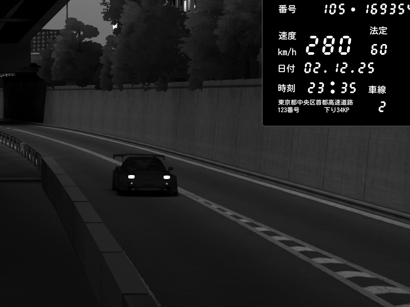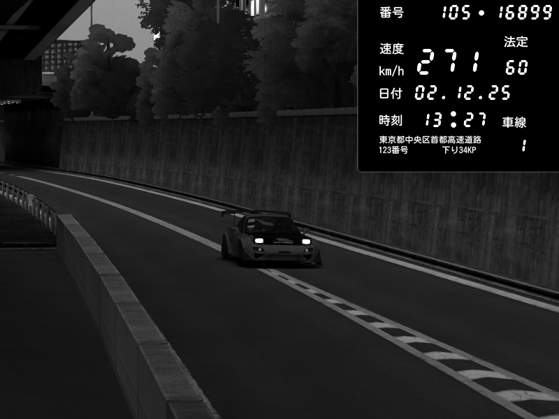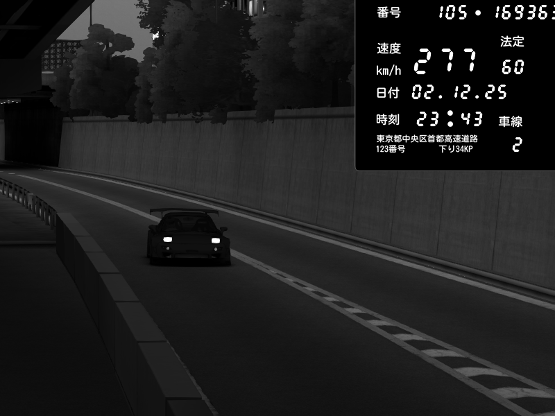 | 2025/12/02 23:35 | C1外回り 京橋 | 282 / 60 km/h | A1z | Mazda RX-7 FD3S FEED Afflux GT3 | CAPTURE |