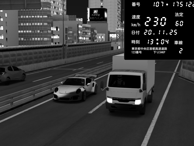 | 2025/11/20 13:07 | C1外回り 京橋 | 254 / 60 km/h | 🔰963🔰 | Porsche 911 GT3 RS | CAPTURE |