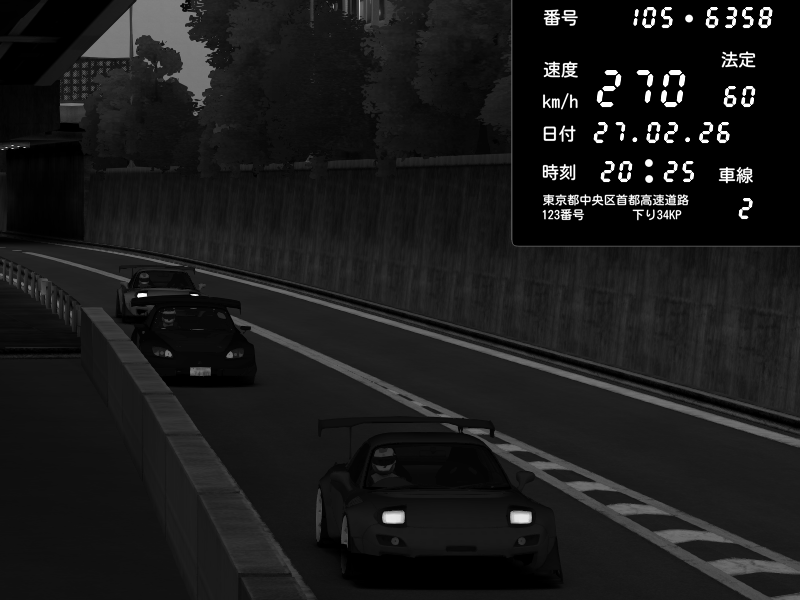| 2026/02/27 20:17 | C1外回り 京橋 | 270 / 60 km/h | Doriten | Honda S2000 Turbo GT1 Amuse (AP1) | CAPTURE |