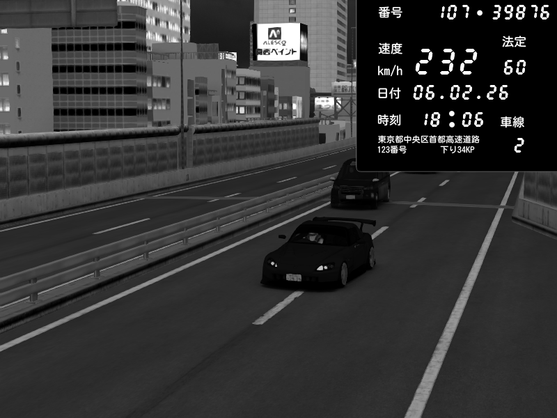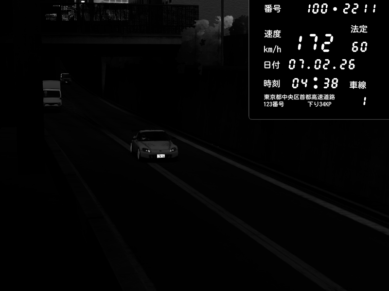 | 2026/02/07 04:38 | C1内回り 京橋 | 172 / 60 km/h | 木曜が一番疲れている | Honda S2000 (AP2 - Legendary) | CAPTURE |