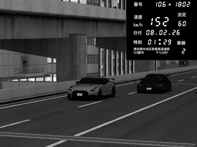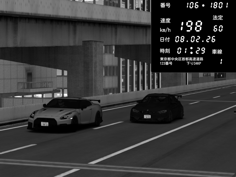 | 2026/02/08 01:44 | C1外回り 芝公園 | 169 / 60 km/h | Keylow5 | BMW M4 crash.Sp Varis Widebody | CAPTURE |