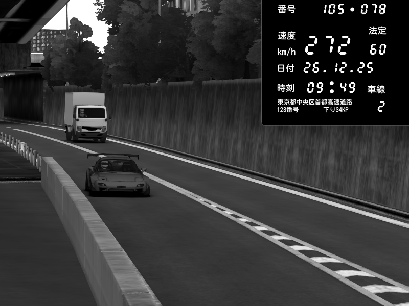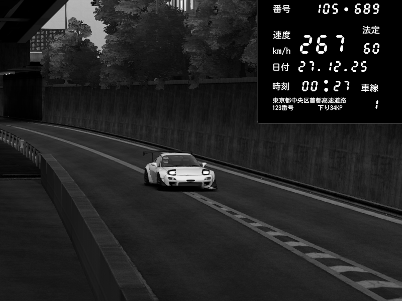 | 2025/12/27 00:27 | C1外回り 京橋 | 266 / 60 km/h | monaco-911senna | Mazda RX-7 FD3S FEED Afflux GT3 | CAPTURE |