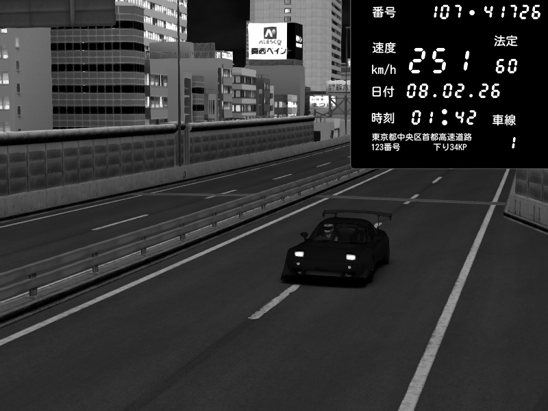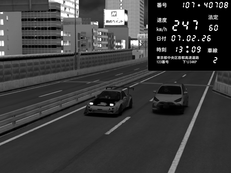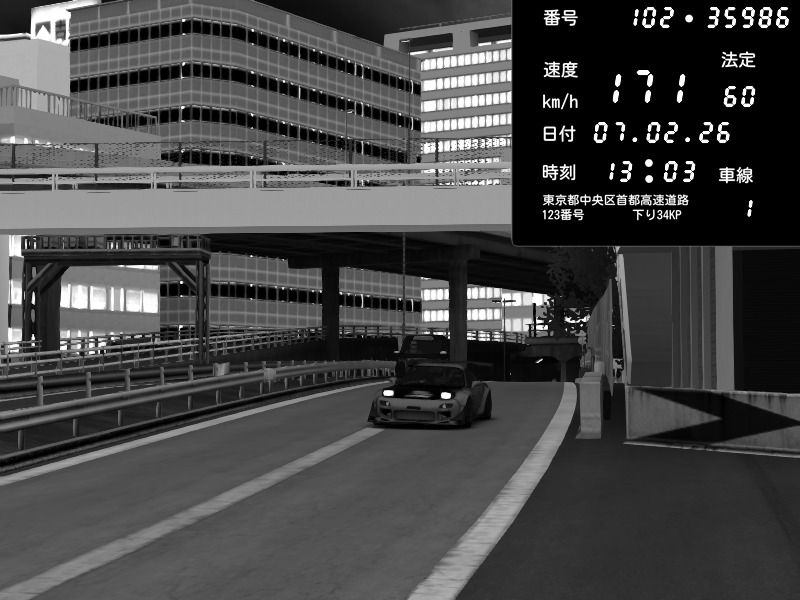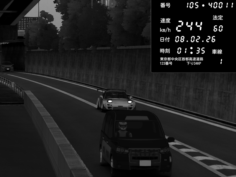 | 2026/02/08 01:30 | C1外回り 京橋 | 218 / 60 km/h | 狙撃されたセイキン | Mazda RX-7 FD3S FEED Afflux GT3 | CAPTURE |